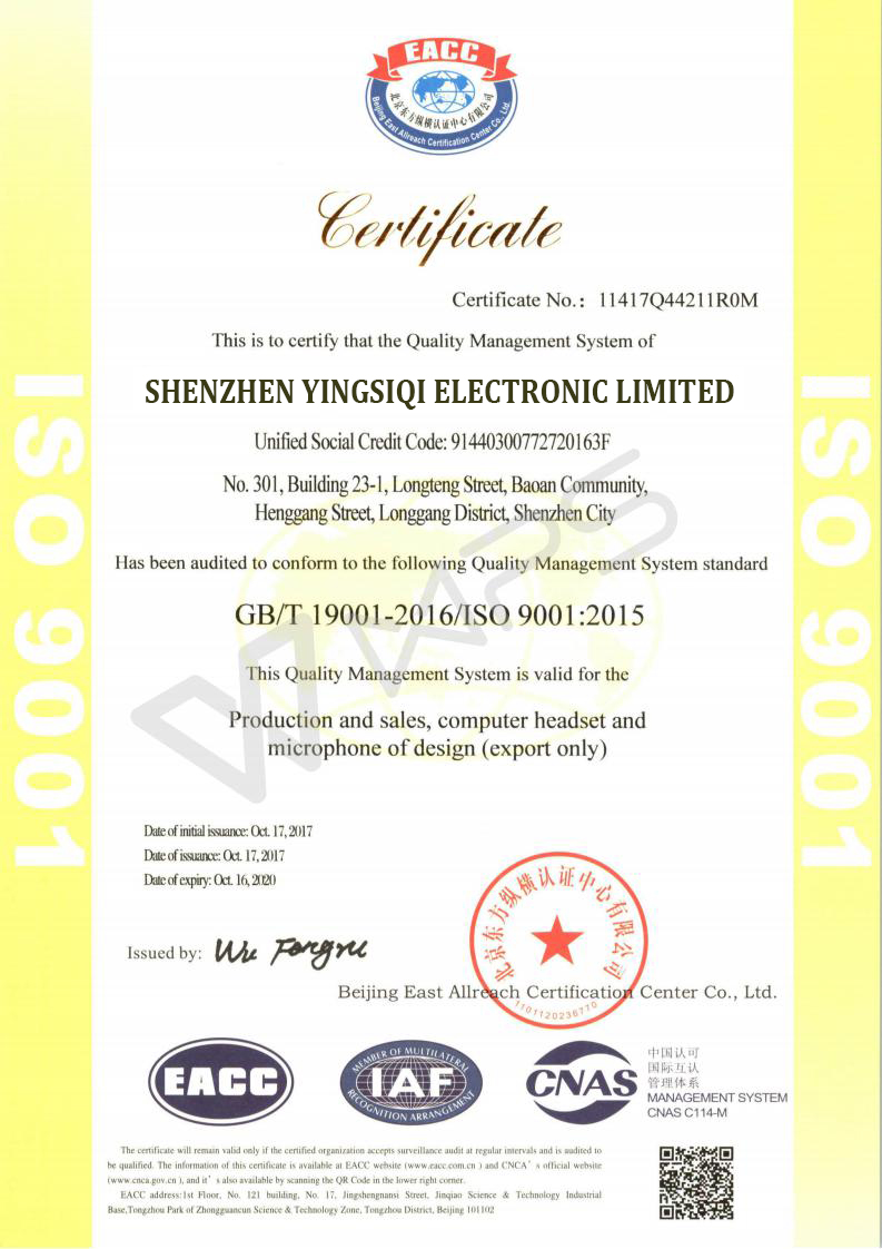 All products can obtain CE, RoHS, REACH, FCC and other certifications. We have obtained a number of international certifications and qualified series of technology and appearance patents. The company passed the certification of three major ISO systems (ISO9001:2015 quality management system, ISO14001:2015 environmental management system and 2007 occupational health and safety management system) in 2021.